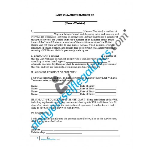 • Model Last Will and Testament (Single with Adult Children) - Virginia
