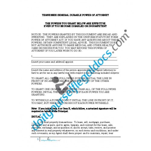 • Model Tennessee General P of A for Property and Finances (Immediate)